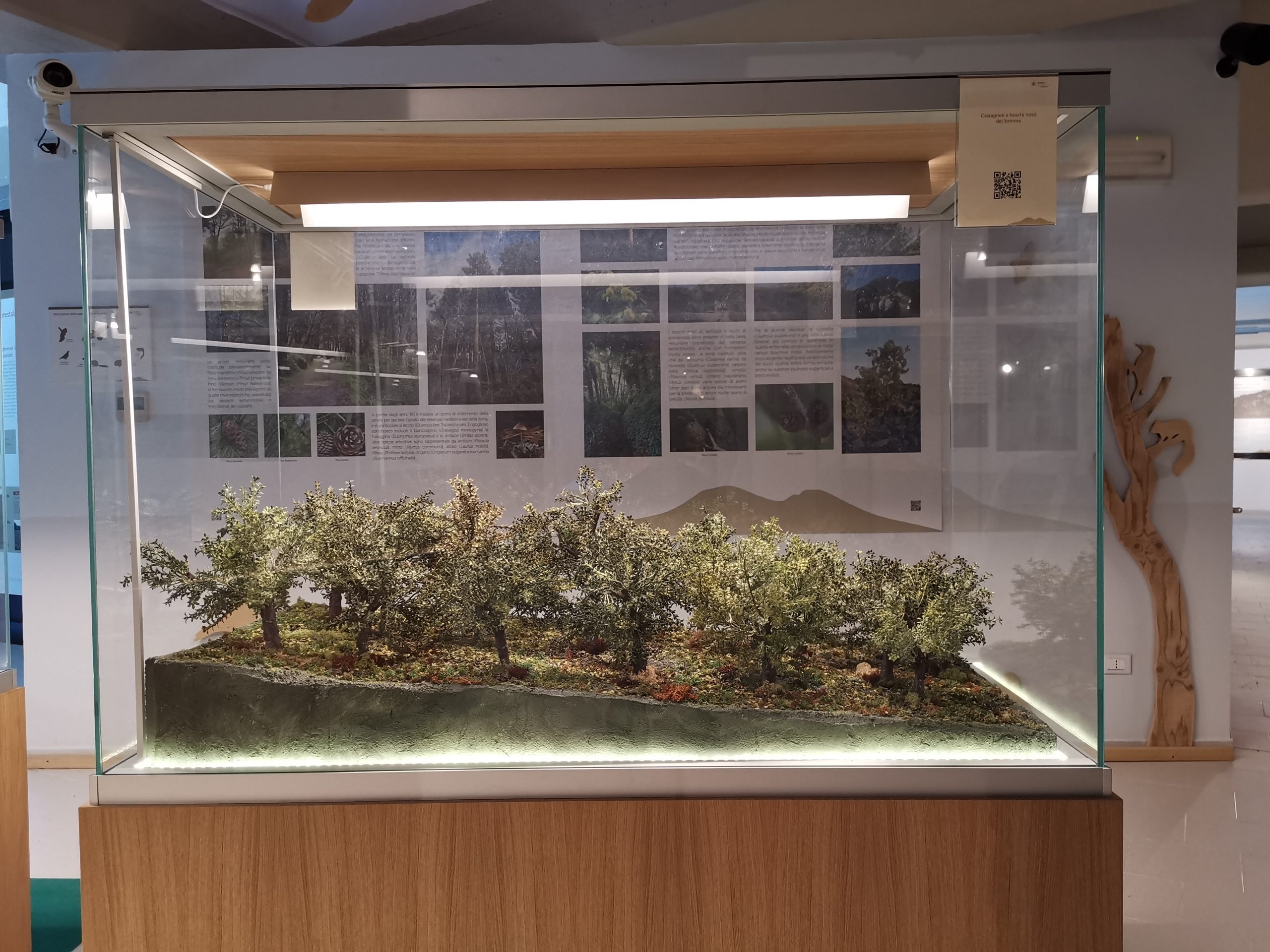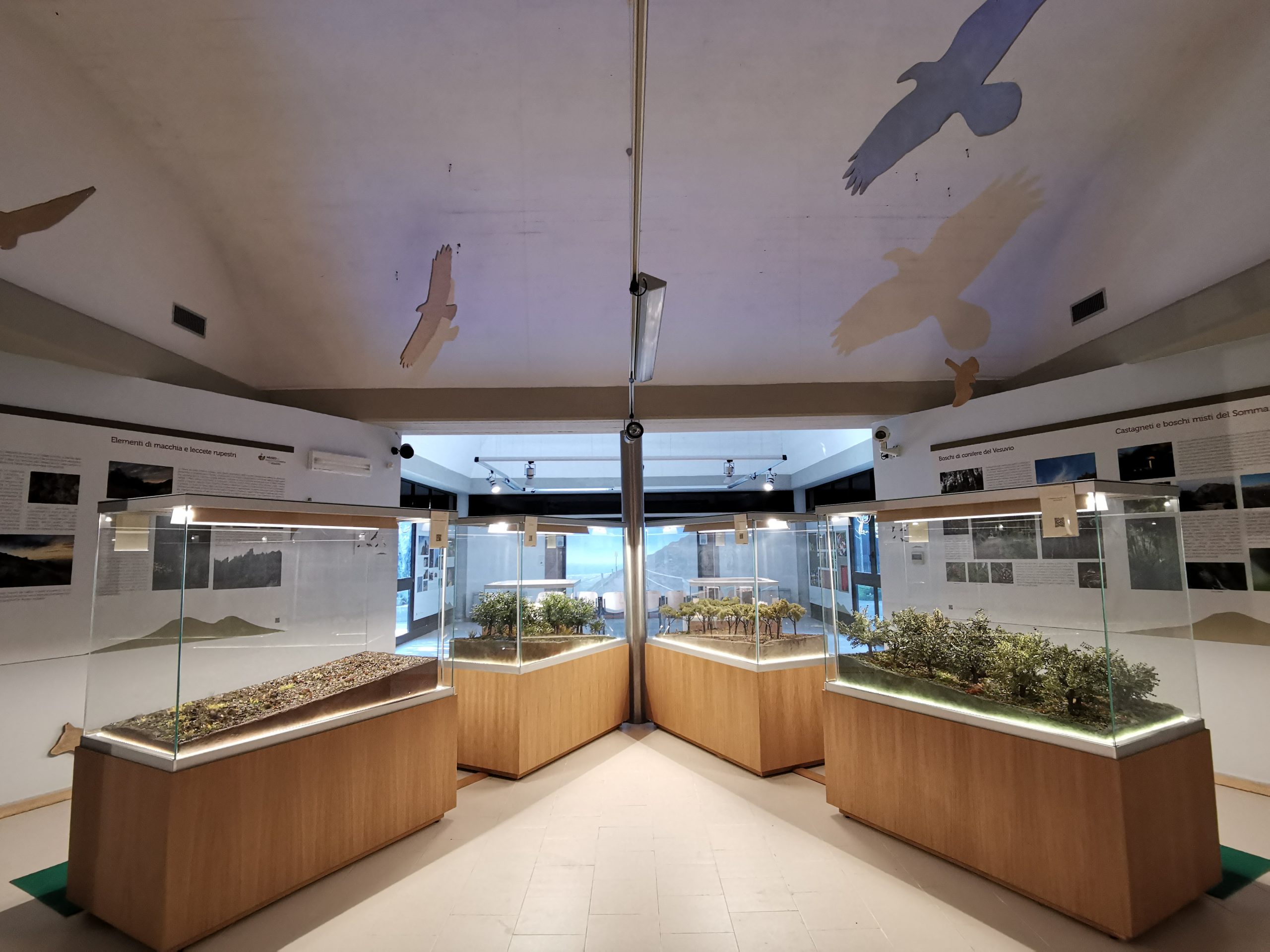 In questa sala sono descritti i quattro Sistemi Ambientali più significativi del complesso vulcanico Somma‐Vesuvio e le principali specie vegetali ed animali che popolano questi ambienti. È inoltre descritto l’ambiente agricolo ed il suo legame con i prodotti vulcanici, attraverso 4 sezioni di suolo rappresentative.